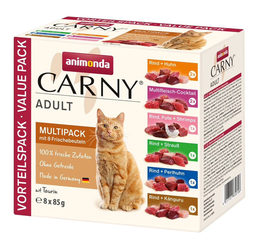 Carny Adult steht für ausgewogene, leckere gesunde Ernährung auf höchstem Niveau für ausgewachsene Katzen von 1-6 Jahren. Die ausgewählten, frischen fleischlichen Rohstoffe garantieren den unvergleichlichen Geschmack, den Katzen überaus schätzen. Carny Adult versorgt die ausgewachsene Katze mit allen lebenswichtigen Nährstoffen.