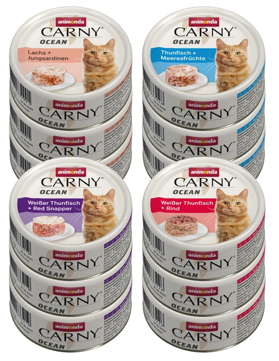 Carny® Ocean mit seinen feinen Fischfilets steht für köstliche Leckerbissen auf höchstem Niveau für ausgewachsene Katzen. Zarter, bekömmlicher Fisch kombiniert mit delikaten Beilagen wie Rindfleisch, Calamari oder Shrimps garantieren einen unvergleichlichen Genuss.