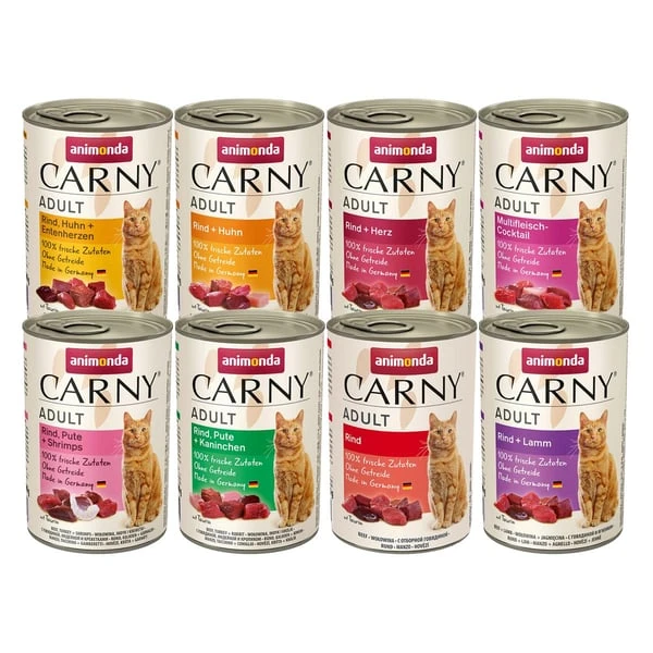Das Animonda Carny Mix Adult ist ein Feuchtfutter zur täglichen Fütterung Ihrer ausgewachsenen Katze. Das ausgewogene und proteinreiche Hauptfutter ist besonders herzhaft und voll im Geschmack. Das abwechslungsreiche Mixpack von Animonda enthält vier verschiedene Sorten mit Fleisch und Fisch. Die Rezeptur ist zuckerfrei und enthält zudem keinen Sojazusatz. Geschmacksverstärker und künstliche Farb- sowie Konservierungsstoffe stehen ebenfalls nicht auf der Zutatenliste. Ein sehr nährstoffreiches Futter, das eine gesunde Lebensweise unterstützt. Die verschiedenen Fleisch- und Fischsorten sorgen dabei für reichlich Abwechslung auf dem Speiseplan.