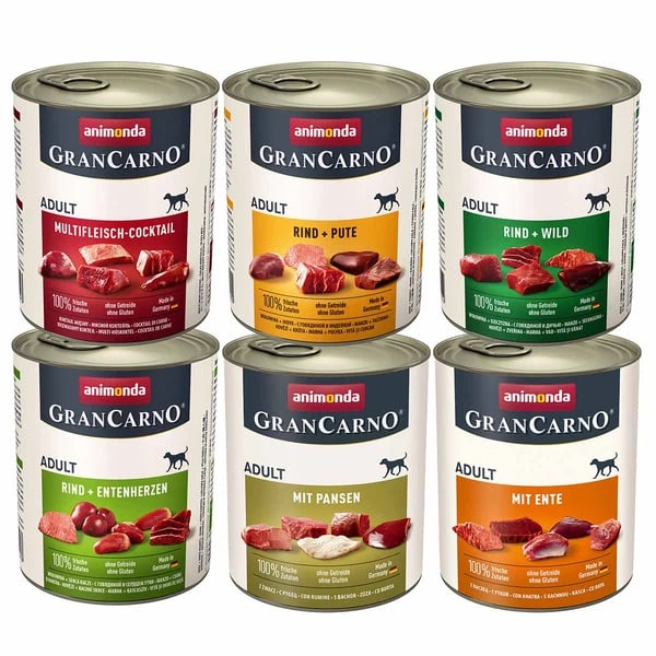 Du suchst ein leckeres Nassfutter, um deinen Hund zu begeistern? Erstklassiges Futter füllst du mit Animonda GranCarno Kräftige Variation in den Napf. Das Mixpack mit seinen besonders abgestimmten Varietäten garantiert ein besonderes Geschmackserlebnis für deinen Hund. Dieses Multipack erleichtert dir das Einkaufen von großen Mengen Hunde-Nassfutter, denn es enthält bereits ausgewählte Sorten in einem Paket.