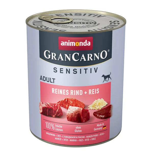 GranCarno Sensitiv Adult steht für ausgewogene, leckere gesunde Ernährung auf höchstem Niveau für ausgewachsene, ernährungssensible Hunde von 1 – 6 Jahren. Ausgewählte, frische fleischliche Rohstoffe – ausschließlich vom Rind – garantieren den unvergleichlichen Geschmack, den sensible Hunde so sehr schätzen. GranCarno Sensitiv Adult versorgt den ausgewachsenen Hund mit allen lebenswichtigen Nährstoffen.
