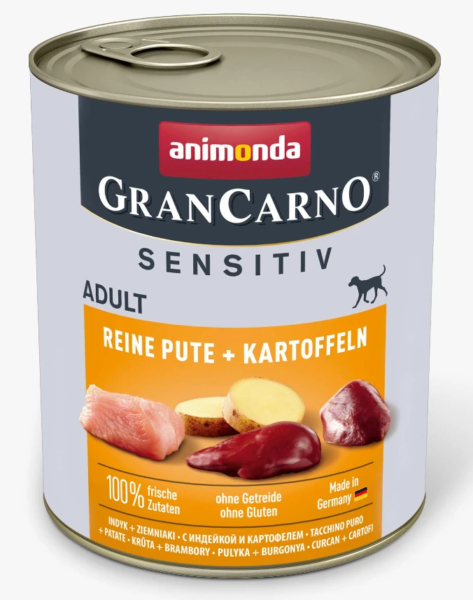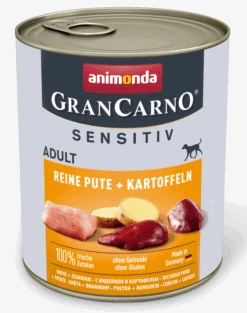 Mit glutenfreier, leicht verdaulicher Kartoffel ist Gran Carno Sensitiv die natürliche Kost (mit nur einer tierischen Eiweißquelle) für den ernährungssensiblen Hund. GranCarno Nassfutter wird ausschließlich aus frischen fleischlichen Zutaten, wie z.B. Herz, Fleisch und Leber zubereitet. GranCarno ist natürlich, unverfälscht und hat den typischen Fleischgeschmack, den Hunde in Ihrem Futter überaus schätzen.