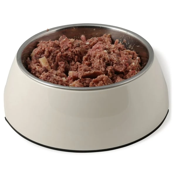 53 % Rind (Herz, Lunge, Fleisch, Leber, Euter Nieren), 10 % Kartoffeln, Calciumcarbonat, Natriumchlorid.