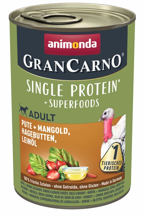 GranCarno Superfoods Pute + Mangold, Hagebutten, Leinöl: Nassfutter für ausgewachsene Hunde