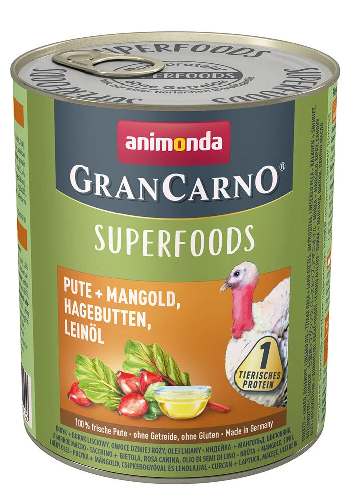 GranCarno Superfoods Pute + Mangold, Hagebutten, Leinöl: Nassfutter für ausgewachsene Hunde