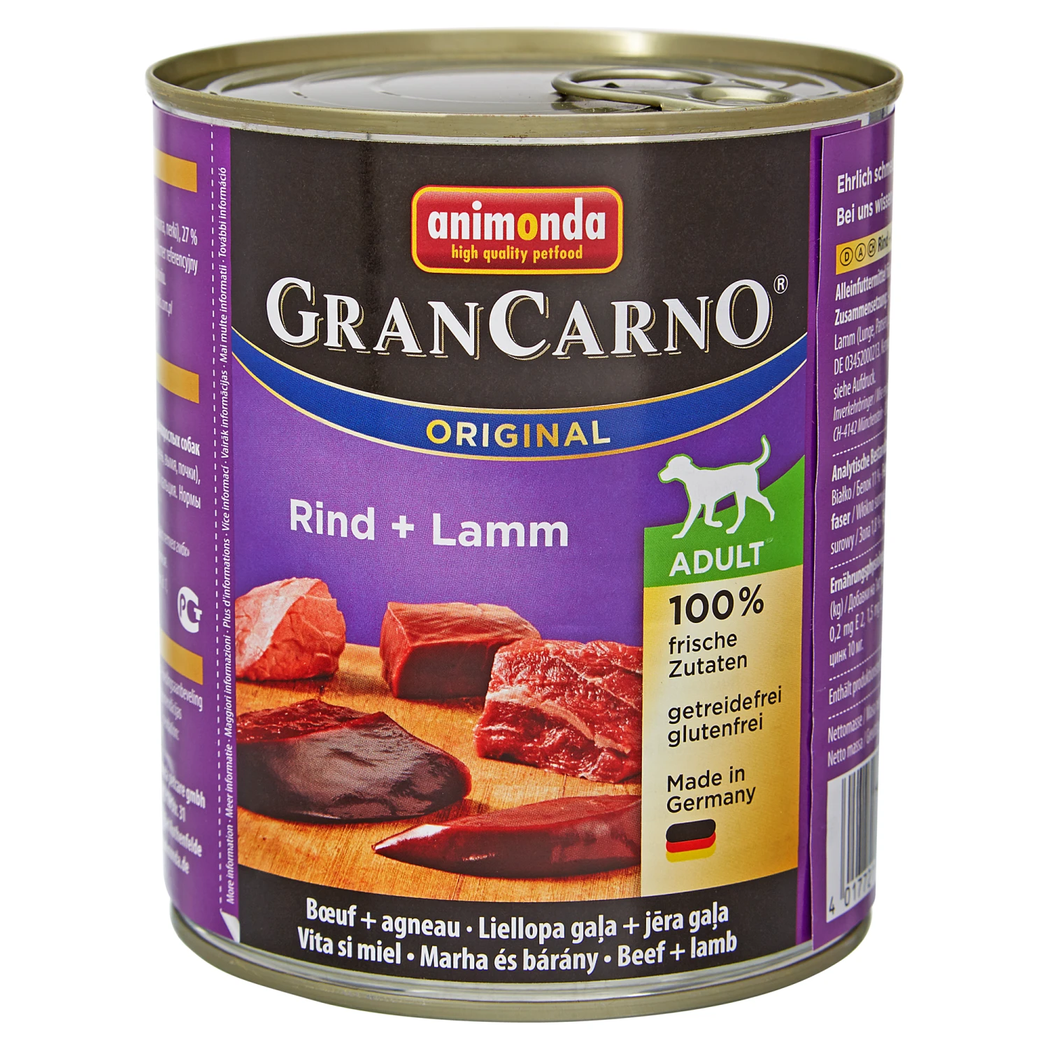 Das Animonda Hundenassfutter „Gran Carno“ Original erfreut sowohl den Hundehalter als auch das Tier, da es mit seinen ausgewählten Zutaten für eine ausgewogene sowie schmackhafte Ernährung sorgt. Neben den Fleischstücken gehören auch Innereien zur Rezeptur, die wichtige Vitamine und Mineralstoffe transportieren. Der Verzicht auf Soja bzw. Getreide fördert die Verdaulichkeit des Alleinfuttermittels.
