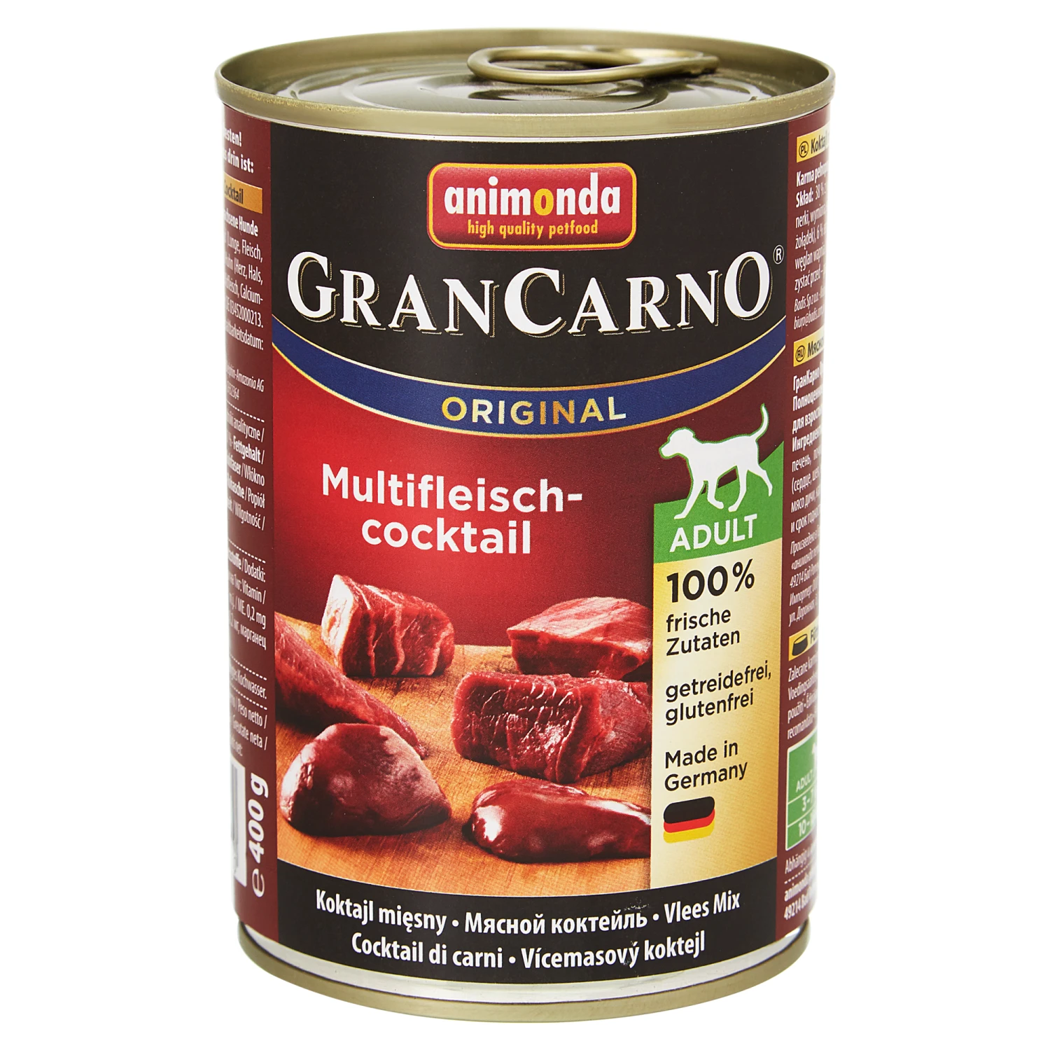 Selbst die wählerischsten Spürnasen genießen den natürlichen Geschmack des Multifleischcocktails „Gran Carno“ Original der Marke Animonda. Das Hundenassfutter setzt sich aus ausgewähltem Rind-, Puten-, Hühnchen- oder Wildfleisch zusammen, wobei gänzlich auf künstliche Geschmacksverstärker verzichtet wird.