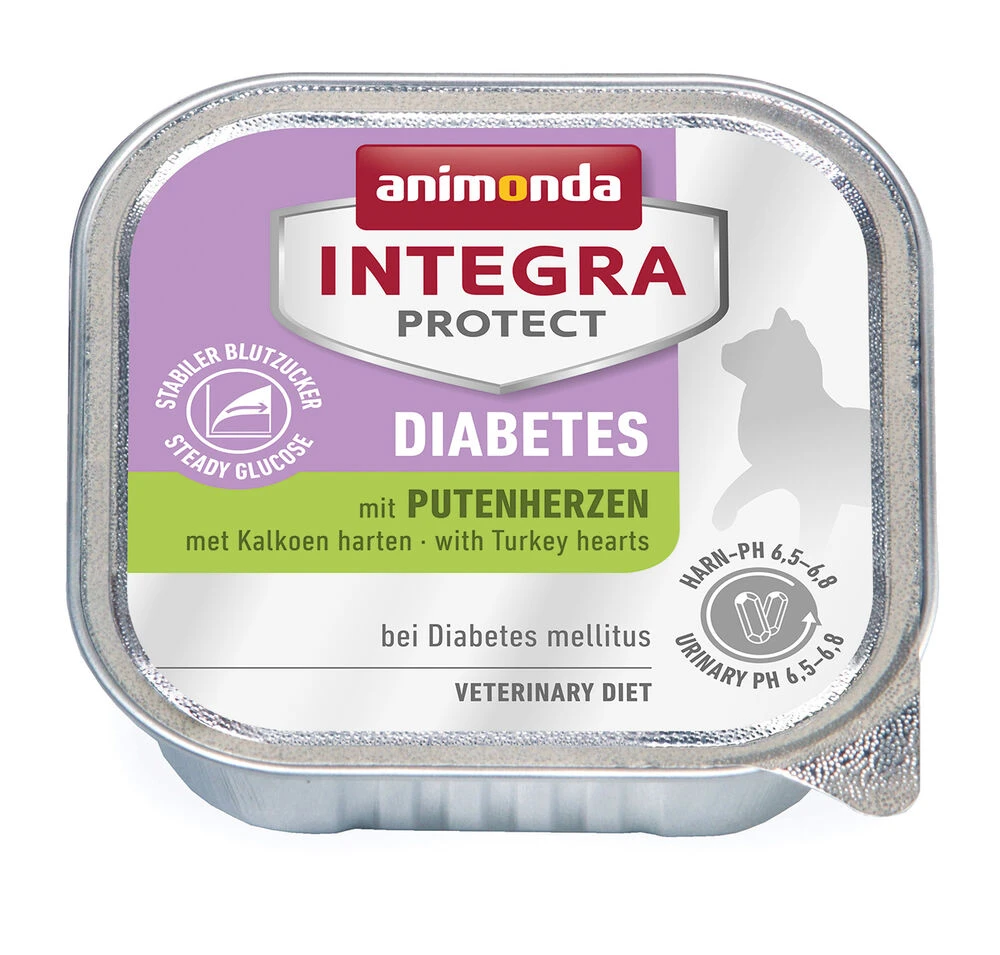 INTEGRA PROTECT Diabetes wurde speziell für zuckerkranke Katzen (Diabetes mellitus) entwickelt. Damit der Blutzuckerspiegel nach der Futteraufnahme möglichst konstant bleibt, sollte die Diätnahrung viel Protein und wenig Kohlenhydrate enthalten. INTEGRA PROTECT Diabetes enthält daher vorwiegend proteinreiche, fleischliche Zutaten, wodurch > 45 % der enthaltenen Energie bereitgestellt werden.