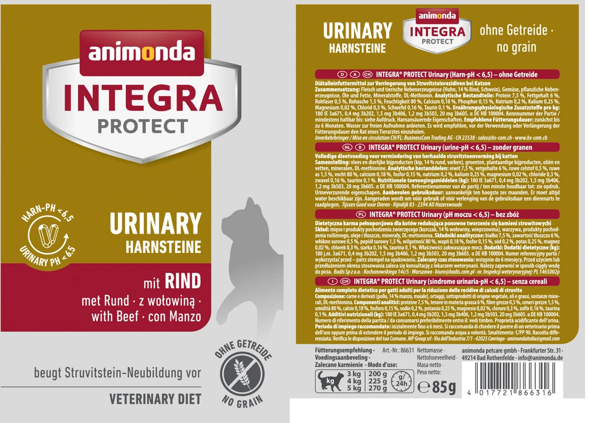 INTEGRA PROTECT Urinary Struvitstein Katzennahrung wurde speziell für Katzen entwickelt, um der erneuten Bildung von Struvitsteinen vorzubeugen. Ausbalancierte Mineralstoffgehalte sowie eine bedarfsgerechte Zufuhr an Magnesium und Phosphor sorgen für einen pH-Wert des Katzenurins von & 6,5. Bei diesem pH-Wert bilden sich keine Struvitsteine mehr.