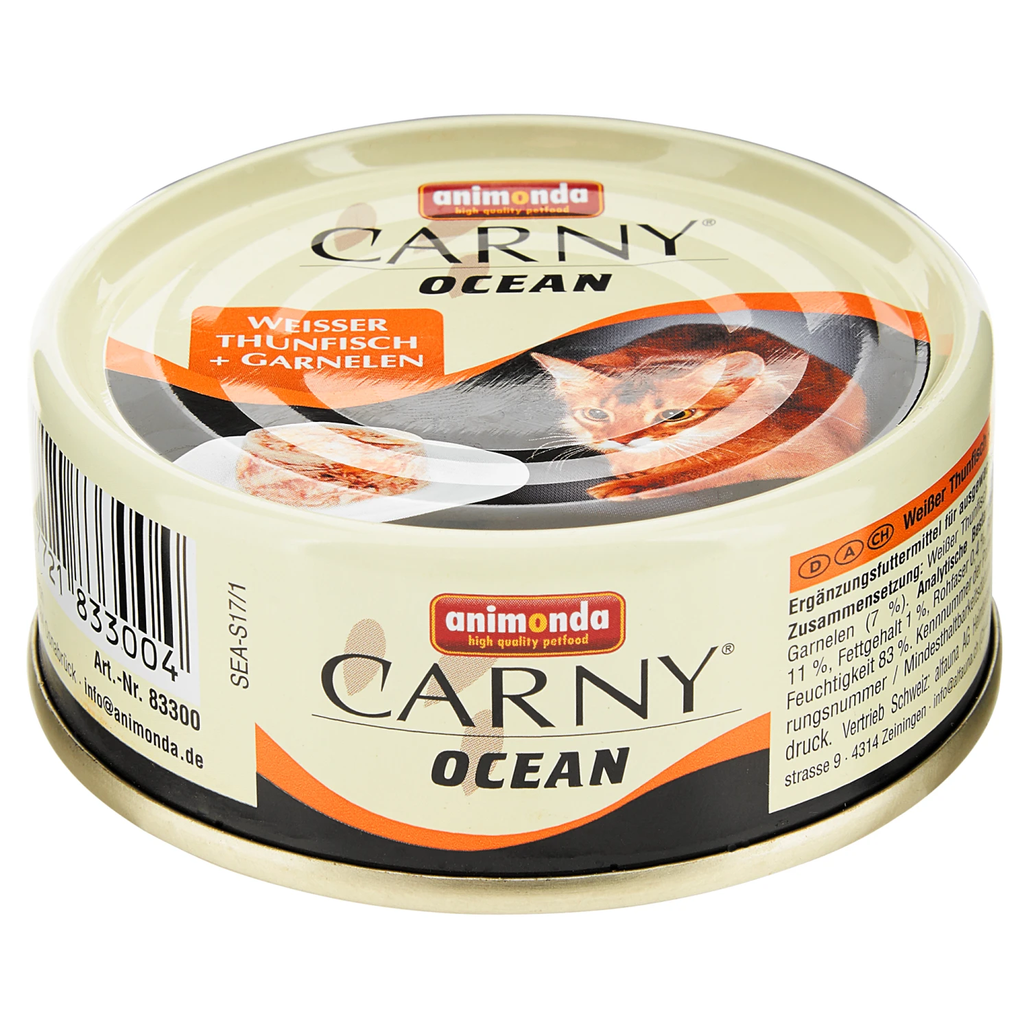 Das saftige Katzennassfutter „Carny“ Ocean von Animonda überzeugt durch ausschließlich frische Zutaten, die darüber hinaus einen hohen Proteingehalt haben und über essentielle Aminosäuren verfügen. Das ist gesund und zugleich ein Leckerbissen für die anspruchsvollen Vierbeiner in Ihrem Zuhause. Geben Sie täglich zwischen 315 und 400 g – je nach Größe der Katze.