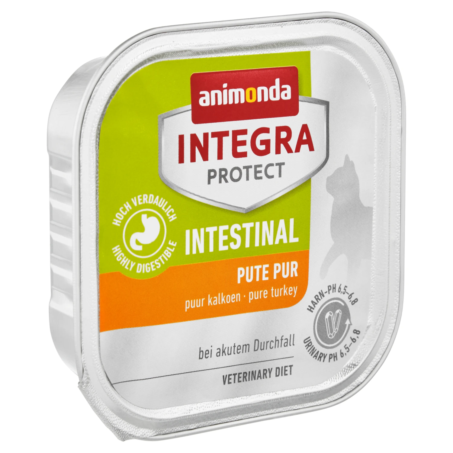 Wenn Ihre Katze an akutem Erbrechen oder Durchfall leidet, empfehlen wir das Nassfutter „Integra Protect“ Intestinal von Animonda, da es dank seiner Nährstoffe speziell auf die Bedürfnisse von derart erkrankten Tieren abgestimmt ist. Das Putenfleisch besitzt viele verdauliche Eiweiße, Fette und Kohlenhydrate. Ebenso transportiert es Elektrolyte, wie z. B. Kalium bzw. Natrium, damit der Darm reizlos versorgt wird.