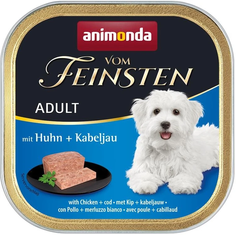 Vom Feinsten Adult steht für ausgewogene, leckere gesunde Ernährung auf höchstem Niveau für ausgewachsende Hunde von 1 – 6 Jahren. Die besondere Auswahl und Qualität der fleischlichen Zutaten garantieren einen einzigartigen Genuss. Die fein-stückigen Pasteten versorgen den ausgewachsenen Hund mit allen lebenswichtigen Nährstoffen.