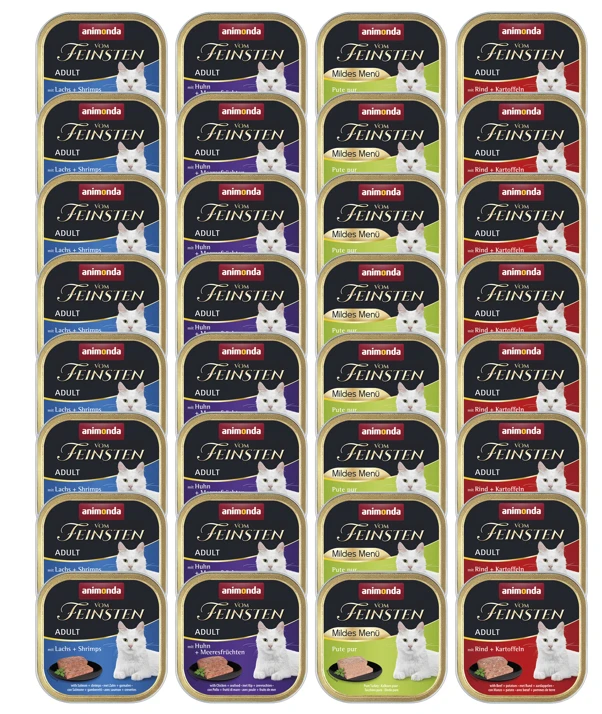 Mit diesem Megapack von Animonda, das aus vier verschiedenen Nassfutter Sorten der Serie Vom Feinsten besteht, erhält Ihre Katze die Gelegenheit, vier köstliche Nassfutter auf einen Schlag
