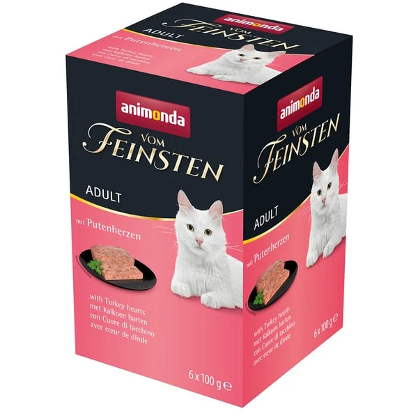 Du suchst ein leckeres Nassfutter, um deine Katze zu begeistern? Animonda Vom Feinsten Adult Putenherzen verwöhnt auch den zartesten Gaumen. Für ein besonderes Geschmackserlebnis sorgt wohlschmeckendes Geflügel. Das Futter ist für Katzen aller Größen geeignet und speziell auf die Bedürfnisse von erwachsenen Katzen angepasst. Das Nassfutter ist frei von Getreide. Hierdurch ist es ideal für zu Allergien tendierenden Katzen geeignet. Aminosäuren wie Taurin sind wichtig für einen gesunden Stoffwechsel und die Herzgesundheit von Katzen. Da Katzen sie nur in geringen Mengen selbst erzeugen können, trägt Animonda Vom Feinsten Adult Putenherzen zu einer ausreichenden Taurin-Versorgung bei. Verzichtet wird außerdem auf die Zugabe von Farbstoffen und Konservierungsmitteln.