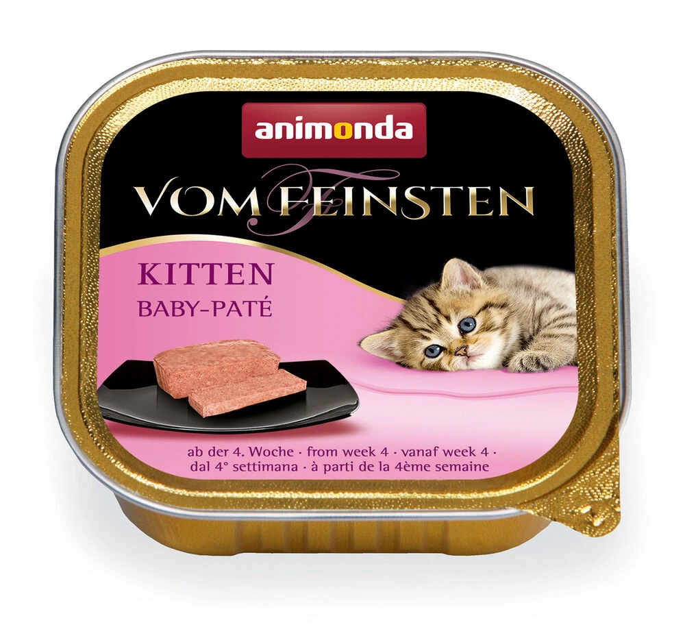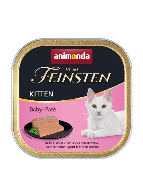 Katzenbabys haben besondere Ansprüche an Ihre Ernährung. Aber auch das kräftigste Muttertier kann ihr Baby mit ihrer Milch kaum länger als 4 Wochen ausreichend mit Energie und Nährstoffen versorgen. Genau da setzt animonda Vom Feinsten Kitten Baby-Paté an. animonda Vom Feinsten Baby-Paté ist für unsere jüngsten Kitten ab der 4. Lebenswoche bestimmt. Die zarte, fein-cremige Konsistenz hilft beim Übergang von der flüssigen Muttermilch zur festen Nahrung.