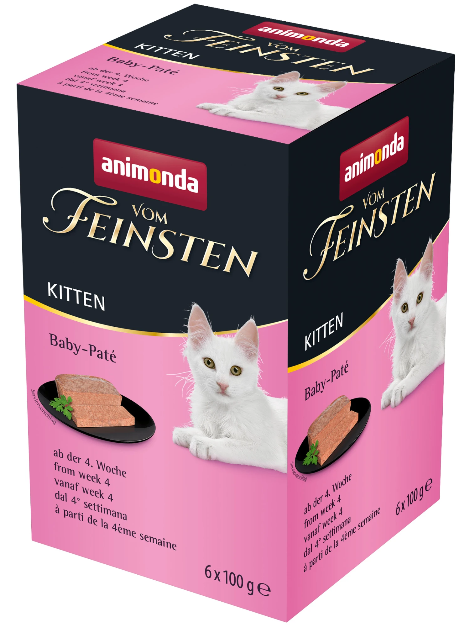 Vom Feinsten Kitten Baby Paté steht für ausgewogene, leckere gesunde Ernährung auf höchstem Niveau für Kätzchen ab der 4. Lebenswoche. Schon vor der Geburt und im Babyalter entwickeln die Katzenkinder ihre ersten feinschmeckerischen Fähigkeiten und Präferenzen. Die zart-cremige Konsistenz des Baby-Patés erleichtert den Übergang von der Muttermilch zur festen Nahrung. Es ist speziell auf die Nährstoffansprüche wachsender Kätzchen bis zur 16. Woche abgestimmt.